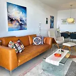 広々としたThe Blue Apartment In Las Mesas, エステポナは、古生物学博物館から徒歩で13分に位置し、プールを提供しています。 アパートには、海の景色を望むテラスが備わります。